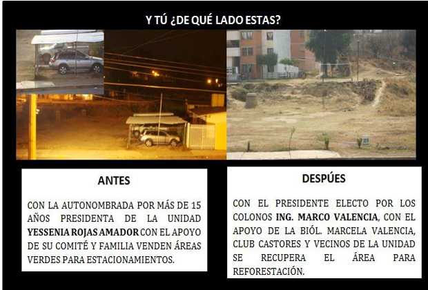 Es de recordar que en días pasados la necedad de Rojas Amador por perpetuarse en el cargo provocó enfrentamientos y denuncias ante la Procuraduría General de Justicia del Estado (PGJE) tras agresiones entre seguidores de la presidente destituida contra simpatizantes de Marco Valencia quien funge actualmente como presidente de los colonos de esa unidad habitacional.
