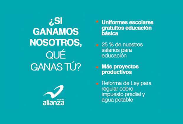 “No solo tenemos cuatro propuestas, estas son las básicas, nuestros candidatos tocan todos los días puertas, para conocer de viva voz las peticiones ciudadanas, y entre ellas está el reclamo en contra de los partidos tradicionales que van, piden el voto y ya no regresan, por eso la confianza a los abanderados de Nueva Alianza que en algunos casos son maestros y han vivido de cerca los problemas en cada distrito, y por eso les decimos lo que van a ganar, si nosotros ganamos, la idea es que todos ganemos”
