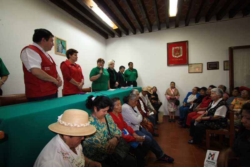 Durante la reunión con pensionados y jubilados, Ramiro Pluma estuvo acompañado de la candidata del PRI a la diputación local por el II distrito electoral, Juana de Guadalupe Cruz Bustos.