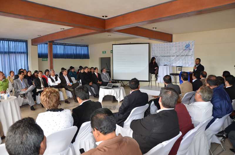 El organismo empresarial, encabezado por Marco Alfonso Santacruz Moctezuma, organizó dicho foro a efecto de que los candidatos a la presidencia de Tlaxcala, expusieran a empresarios su propuesta de gobierno municipal.