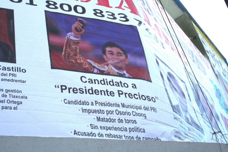 Rafael Ortega Blancas aparece como el “Candidato a Presidente Precioso”, impuesto por Osorio Chong, matador de toros, sin experiencia política y acusado de rebasar los topes de campaña.