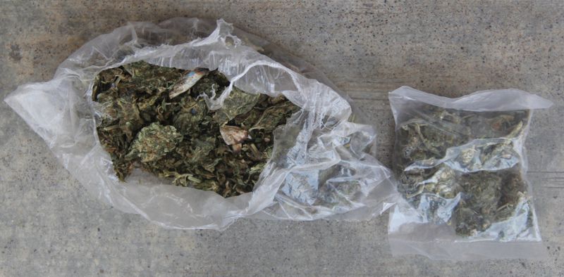 Además de que cuando revisaron los bolsillos de la sudadera y pantalón que portaba se le encontraron dos bolsas de plástico transparente que en su interior contenían también hierba seca de color verde con propiedades similares a las de la marihuana, a determinar por los peritos.