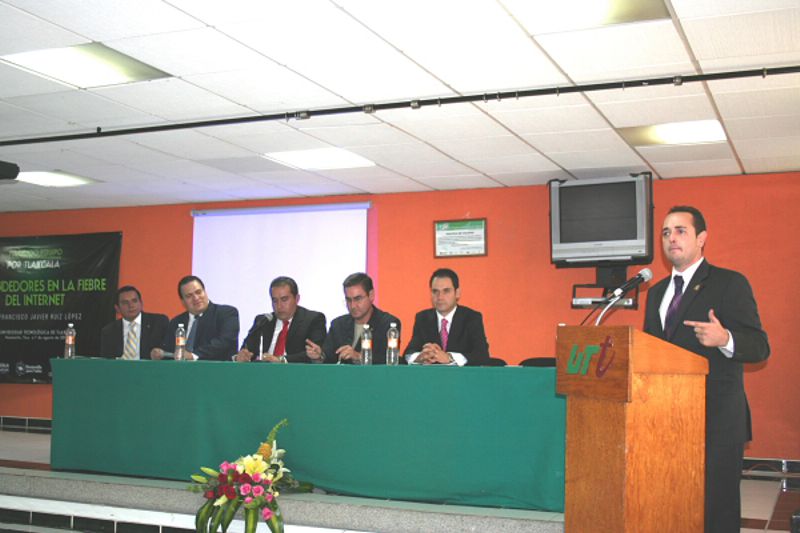 Los trabajos se iniciaron en la Universidad Tecnológica de Tlaxcala (UTT), ubicada en el Carmen Xalpatlahuaya, donde Francisco Javier Ruíz López dictó la conferencia “Emprendedores en la fiebre del Internet”.