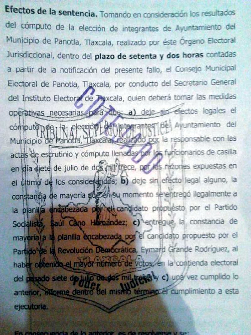 En el documento, del que este medio posee copia, se lee que el Consejo Municipal Electoral de Panotla, por conducto del Secretario General Electoral de Tlaxcala, deberá tomar las medidas operativas necesarias para: