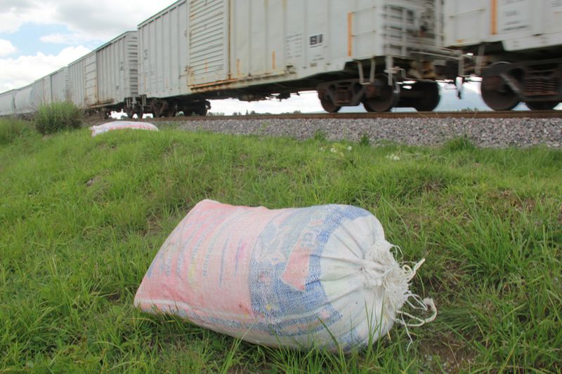 Tras el trayecto los uniformados localizaron en dirección de la vía del tren y a un costado de una barda, seis bultos que contenían semillas, presuntamente hurtadas de los vagones de la locomotora.