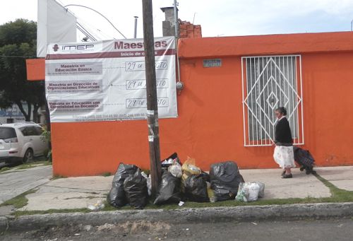 Vecinos de la calle 5 de febrero mostraron en un breve recorrido el malestar porque el camión recolector de basura no pasa, el resultado son montones de basura acumulada en cada esquina.