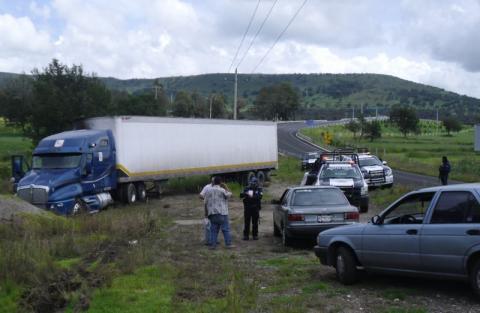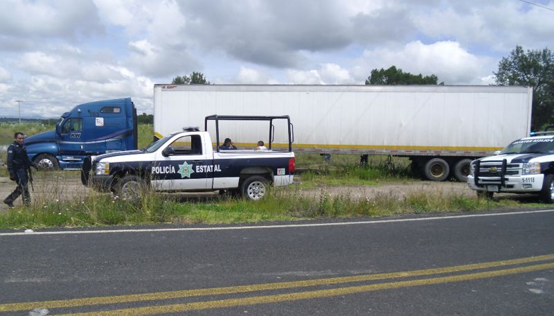 En el entronque a Españita con dirección hacia el mismo municipio, donde al intentar maniobrar el tráiler, perdieron el control y quedaron atascados en un terreno fangoso a un costado de la cinta asfáltica haciendo imposible el movimiento del mismo por lo que los maleantes emprenden la huida.