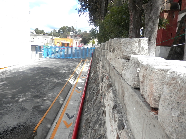 Pero además la empresa ya construyó una barda y prácticamente dejó encajonada la periferia de la iglesia, sin respetar las banquetas y menos las vialidades.