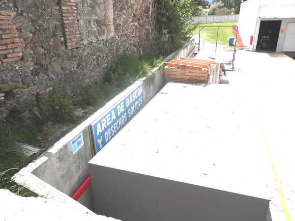 En lo que era la calle ha construido un lugar para embarcar su mercancía, ya que esta empresa elabora botellas de plástico para la empresa Femsa, instalada a unos cuantos metros.