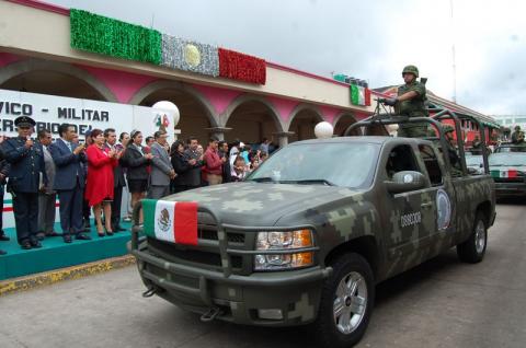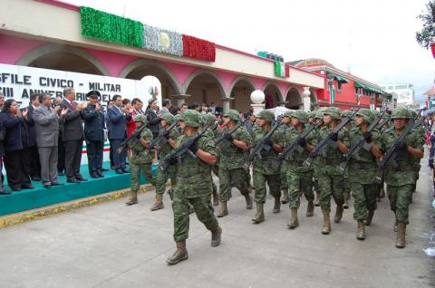 El evento, que duró una hora, fue encabezado por el efectivos del Ejército y las Fuerzas Armadas de la 23 Zona Militar, cuyo contingente presentó cuatro banderas, siete guiones, siete jefes, 23 oficiales, elementos de tropa, soldados del Servicio Militar Nacional, 12 mujeres voluntarias, 47 rurales, cuatro módulos canófilos, 37 vehículos con funciones operativas y administrativas y un vehículo del Plan DN-III-E.