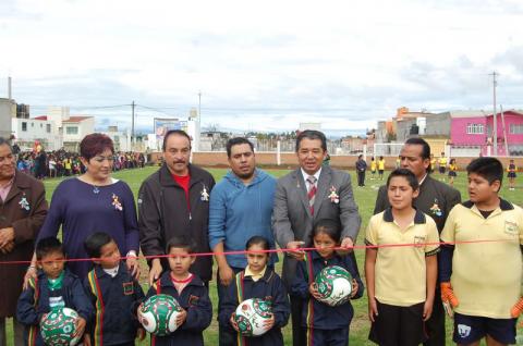Chiautempan, Tlax.- El presiente municipal de Chiautempan, Ángel Meneses Barbosa acompañado de autoridades municipales, educativas y escolares inauguró las recién remodeladas y acondicionadas instalaciones de la cancha deportiva ubicada en la Escuela Primaria “Centro Escolar”, inmueble que permitirá a más de 800 alumnos realizar diversas actividades deportivas como el atletismo, futbol y acondicionamiento físico, principalmente.