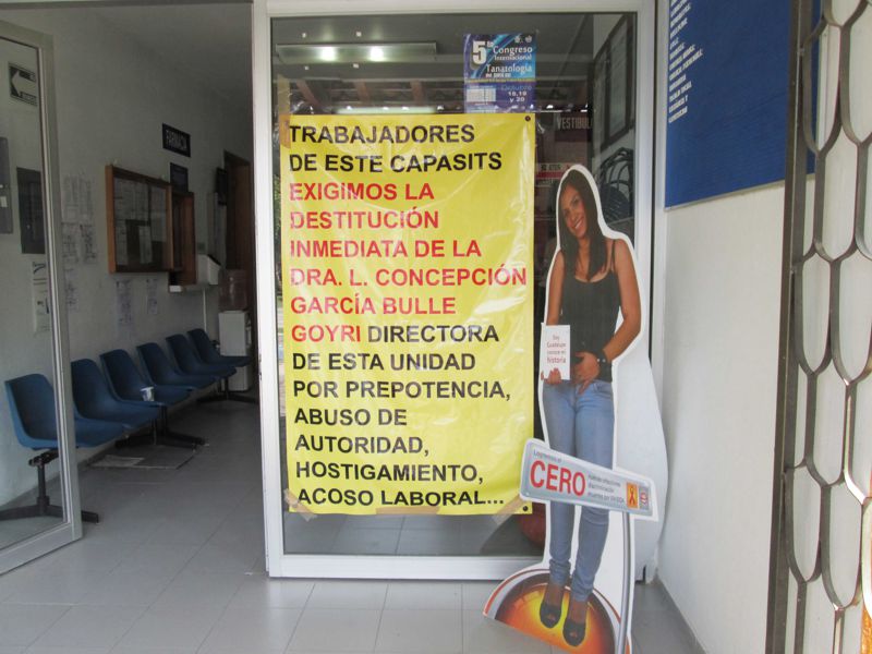 Al percatarse de la presencia de la Directora Bulle Goyri, trabajadores disidentes de inmediato trataron de bloquearle el acceso, originando gritos y jaloneos de ambas partes, sin embargo a la señal de la directora, las tres personas que aparentaban ser pacientes al interior del inmueble, comenzaron a golpear y a someter a los trabajadores quienes ignoraban que se trataba de policías ministeriales “contratados” para golpear a todo el que se opusiera al regreso de Bulle Goyri.