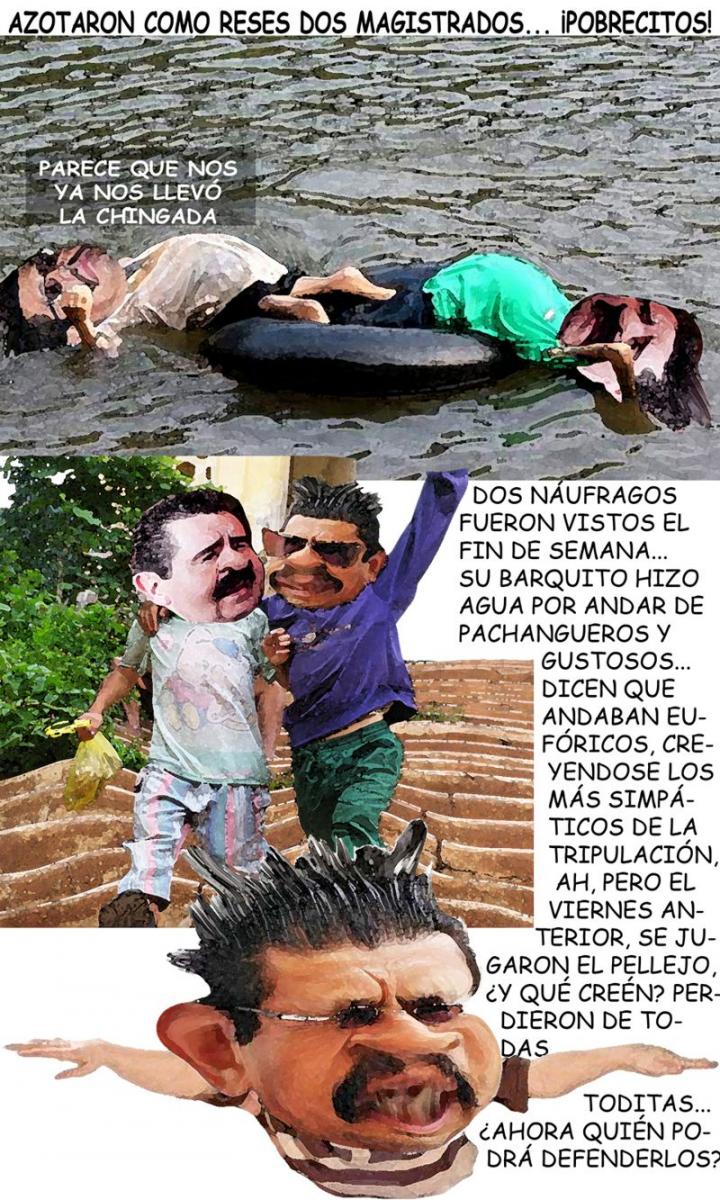 Arturo Tecuatl Y lo peor es que eran del otro bando.. Por andar queriendo perpetuarse en el poder, estos dos jueces de pedigrí perdieron todo... lo peor es que eran del otro bando, y tras este descalabro quedaron solos, solititos, en este mar turbulento.... Tags: Comic Politico 1Arturo TecuatlMagistradosPedro MolinaFernando BernalNo RatirficadosCorrupciónDenunciasTlaxcala Online