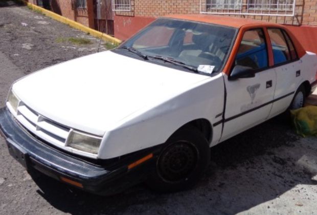 Por lo cual procedieron a la revisión del vehículo Dodge Chrysler Shadow, color blanco con el toldo color naranja, sin placas de circulación, con engomados 2563WWB y 4863WWA ambos del estado de Tlaxcala, número de serie 3C3B548W1RT304534, mismo que se encontraba estacionado y cerrado.