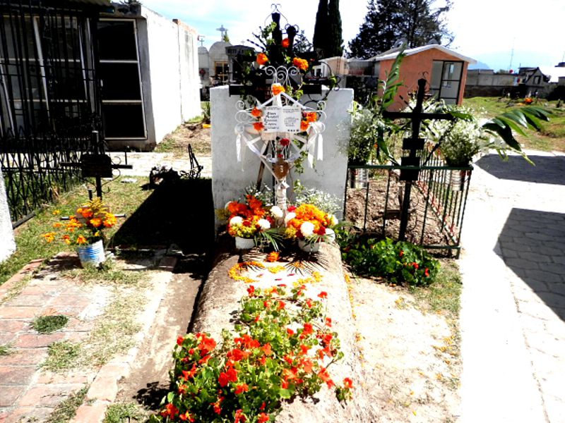 Hay de todo, tumbas pobres y abandonadas, llenas de maleza, destaca la de una niña, le pusieron juguetes y una mini ofrenda, hay otra cruz en medio de una tumba de agua, no se le ve el nombre.