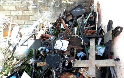 Otras cruces se encuentran en un gabinete de cemento, parecen estar en espera de que alguien las reclame o pague su perpetuidad, no faltan los aguadores o escombradores de tumbas.
