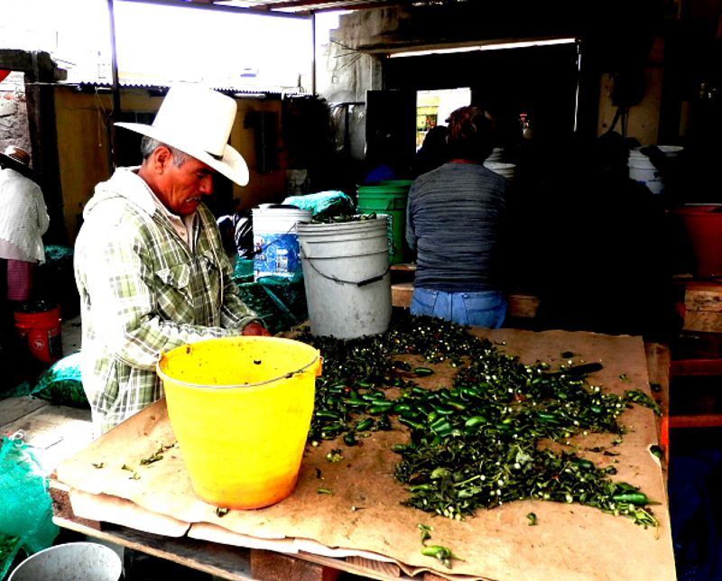 El trabajo consiste en arrancarles a cientos de miles de chiles el rabo, para proceder a su envasado, es un trabajo sencillo, cualquiera lo puede hacer, no importa la edad, ni la preparación académica.