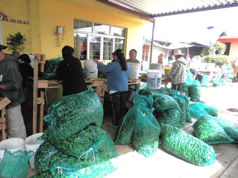 Comenta que en esta zona son tres las maquiladoras de chiles que se han instalado, hay otra en el pueblo de Benito Juárez y una más en el pueblo que sigue de San Francisco Villa Tecoaque.