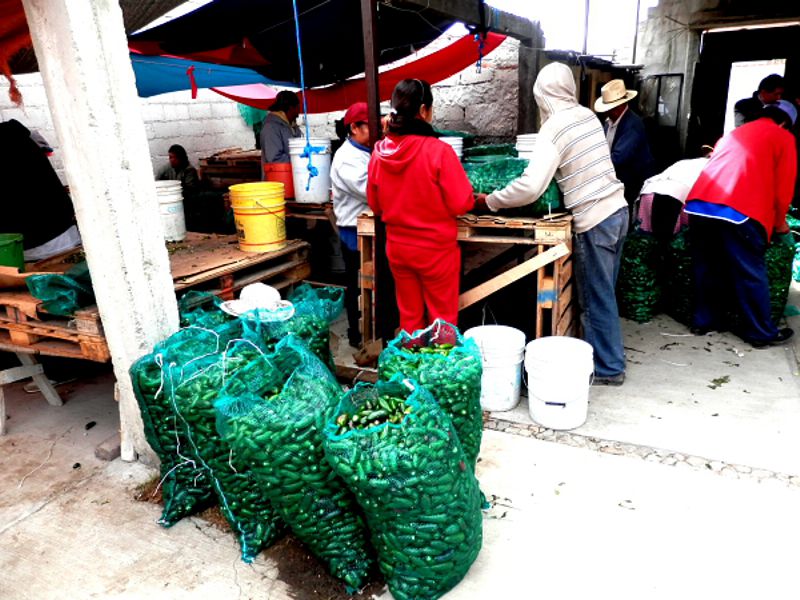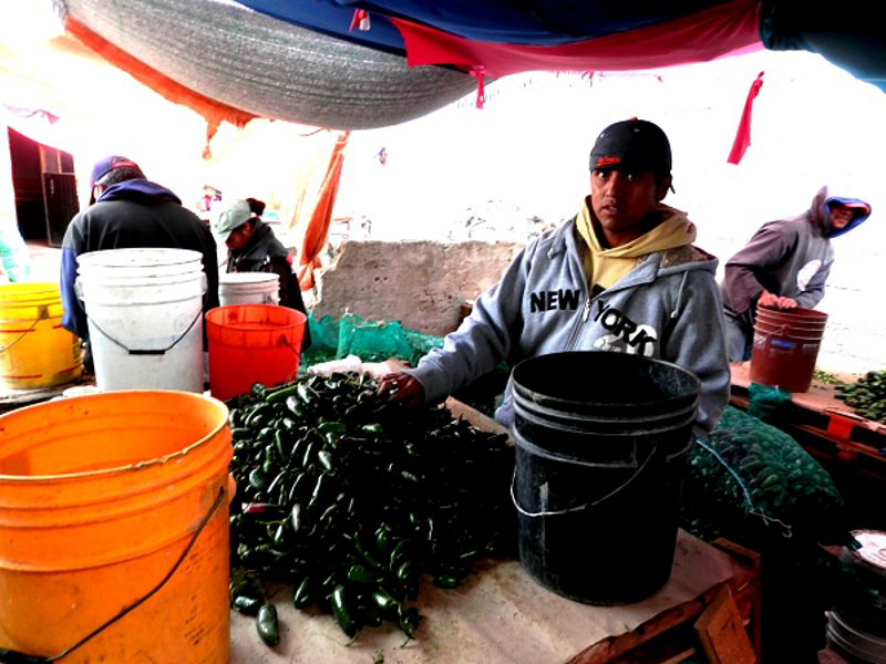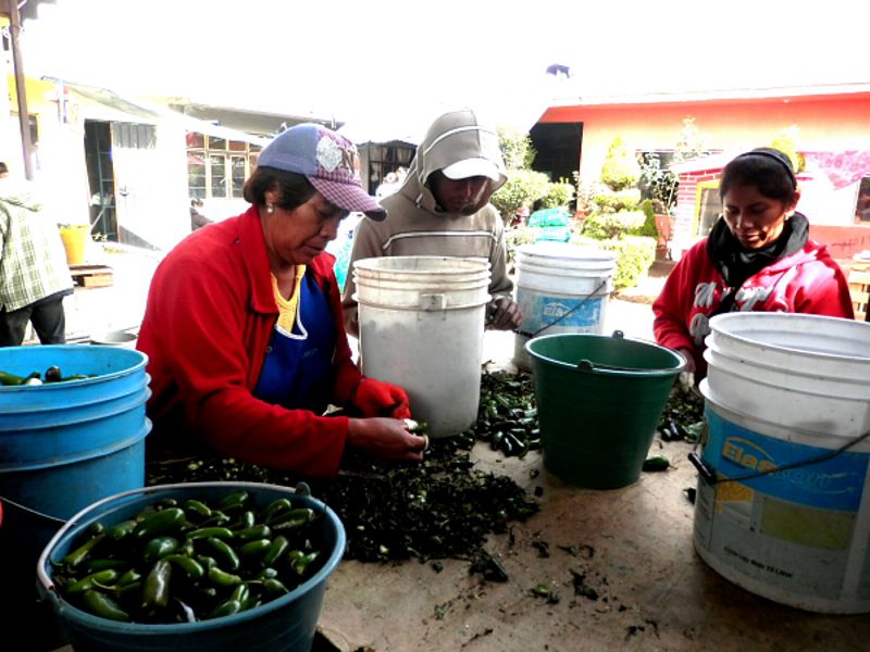 “Nuestro trabajo consiste en quitarle los rabos a los chiles jalapeños, parados en un solo lugar, con montones inacabables de chiles, toda la semana, todos los días es la misma rutina”, explicaron.