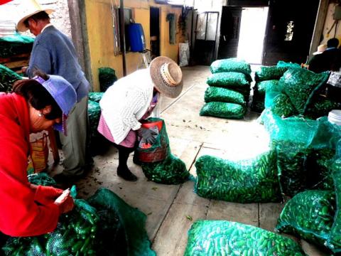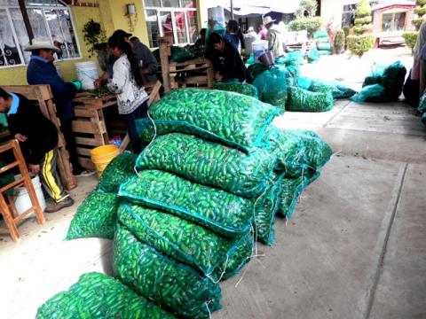La arpilla nos la pagan en diez o trece pesos, son costales con malla que contienen cientos chiles jalapeños, algunos les llaman chiles serranos y otros chiles gordos.