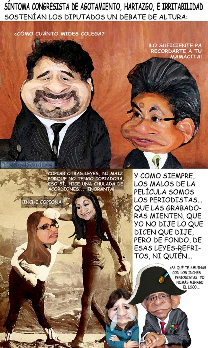 No es otra cosa que el cansancio propio de una legislatura que ya dio lo que tenía que dar, no mucho verdad, pero seguramente los diputados hicieron su mejor esfuerzo... ahora, hay que buscar culpables de su imagen malita malita... ¿qué tal culpar a los periodistas?... ¡genial!, así se forma un distractor y ni Caritina aclara lo de los fusiles de ley, ni se lleva a la tribuna un debate tan profundo como aquél de sentirse contento o no por ser chaparro...