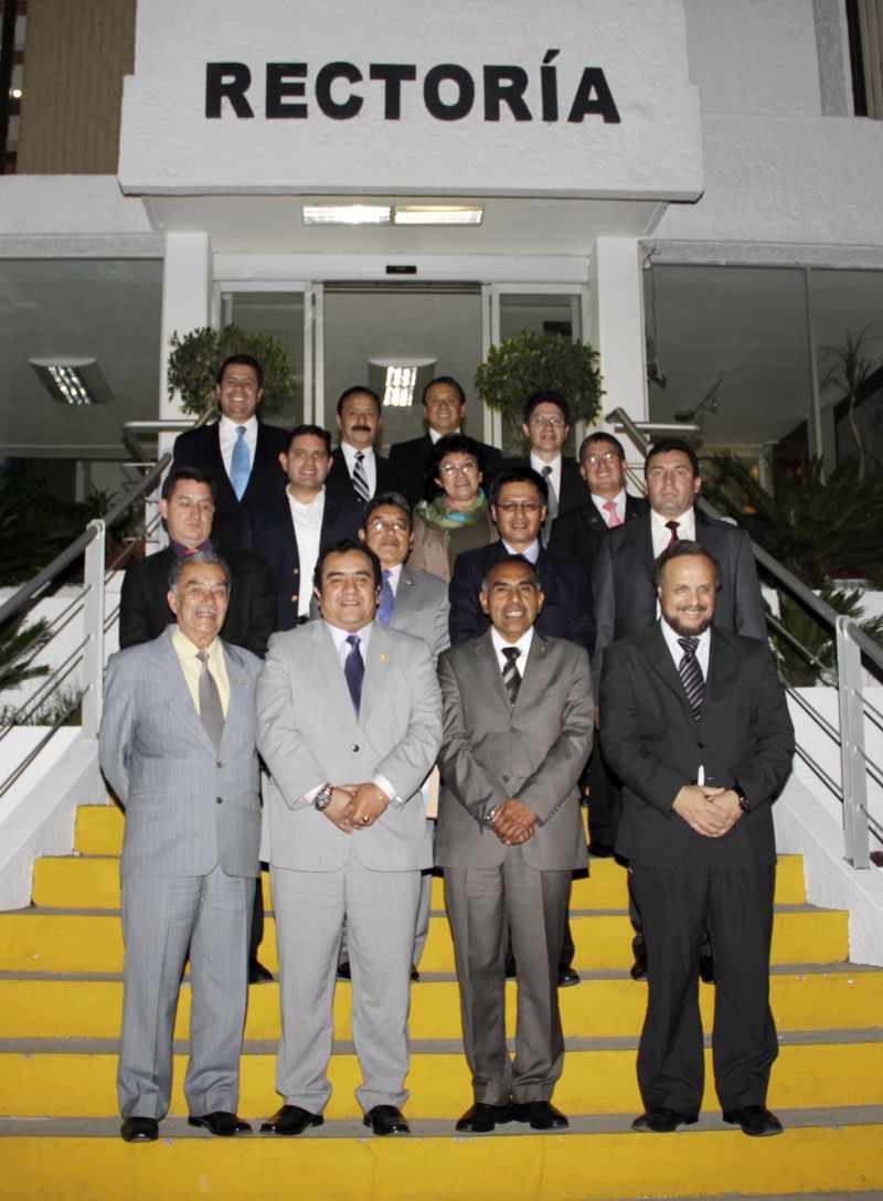 Con el Dr. Víctor Job Paredes singaron la carta de intención: Dr. Boris Santos Gómez Uzqueda, Rector Magnífico de la Universidad Nacional de Oriente, Bolivia; Dr. Daniel Munguía Hernández, Subdirector de Planeación del Instituto Tecnológico de Ensenada, México; Dr. Carlos Gabriel Pérez Pérez, Representante Legal del Instituto Superior Tecnológico Particular Sudamericano, Ecuador; Dr. Guillermo A. García Velázquez, Presidente del Consejo de Administración y Gobierno de la Universidad Tecnológica Internacional, México.