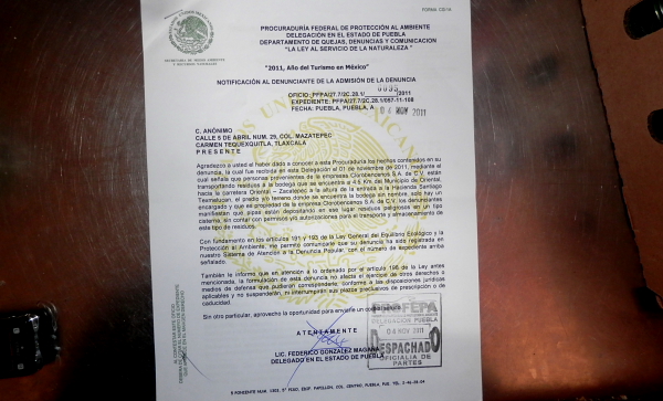Mazapa, Tlax.- La nula respuesta de las autoridades federales, estatales y municipales para atender el problema de la contaminación ambiental que genera la empresa Clorobencenos obliga a los vecinos a solicitar ayuda internacional de Greenpeace y de agencias informativas internacionales.