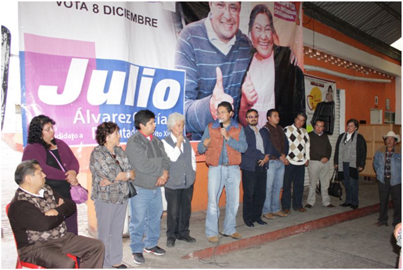 Los diputados electos del Partido Acción Nacional PAN, José Gilberto Temoltzin, Lourdes Huerta Breton, Roberto Zamora García, Julio Cesar Hernández Mejía, Humberto Marías Romero y Ángelo Gutiérrez Hernández, se unieron la tarde de ayer en el onceavo día de campaña, al recorrido que por barrios y colonias de Calpulalpan y Nanacamilpa realiza el candidato de la coalición ”Por el respeto a la dignidad ciudadana” PAN-PAC hacia la diputación por el distrito XIII, Julio Álvarez García, como muestra de solidaridad a este proyecto político