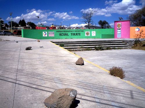 Apizaquito, Tlax.- Desde hace tres años, el parque recreativo y deportivo Kcual Tikate permanece en el olvido, la maleza se apodera del lugar, incluso hay animales ponzoñosos, no hay vigilancia y piedras son colocadas en la entrada principal dan la bienvenida a los visitantes.