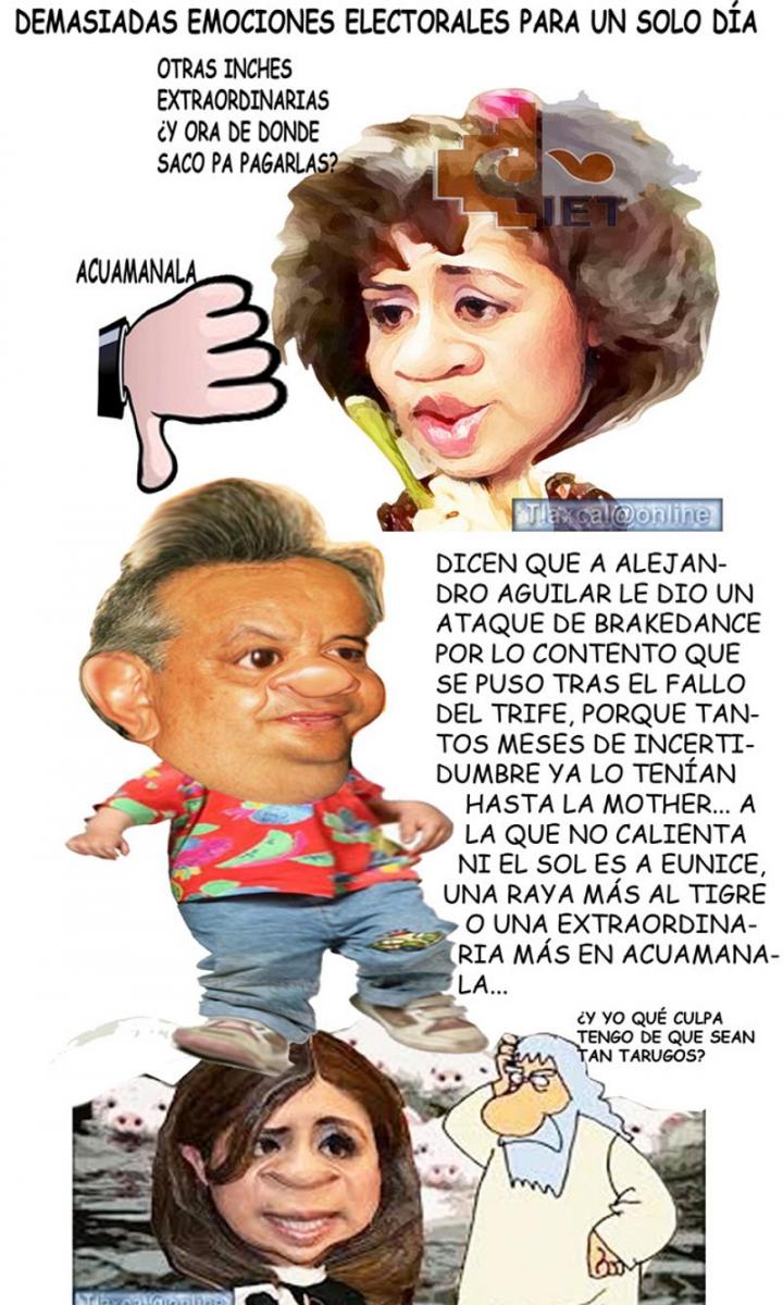 El debate que puede darse entre las salas del TRIFE, es como una cachetada con guante blanco a la miserable salita unitaria que tenemos en Tlaxcala... Bueno, ayer jueves, día de hartas emociones; primero, ratificaron en Huamantla a Alejandro Aguilar López... y luego, volvieron a echar para abajo la elección en Acuamanala, donde van a tener que organizar nuevas elecciones.