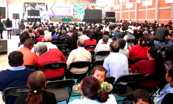 Ante sus paisanos, Lorena Vásquez destacó la perforación y equipamiento del pozo de agua potable en la población de San Salvador Tzompantepec, que es el primer pozo en la localidad.
