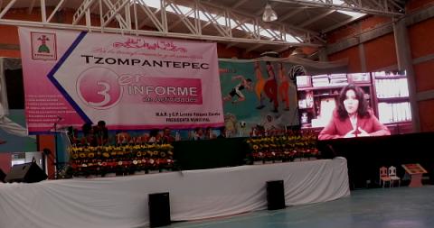 Ahuashuatepec, Tlax.- La alcaldesa de Tzompantepec, Lorena Vásquez Zárate rindió su tercer informe de labores en San Andrés Ahuashuatepec, en medio de un clima de expectación donde dijo que pese a las adversidades Tzompantepec avanza.