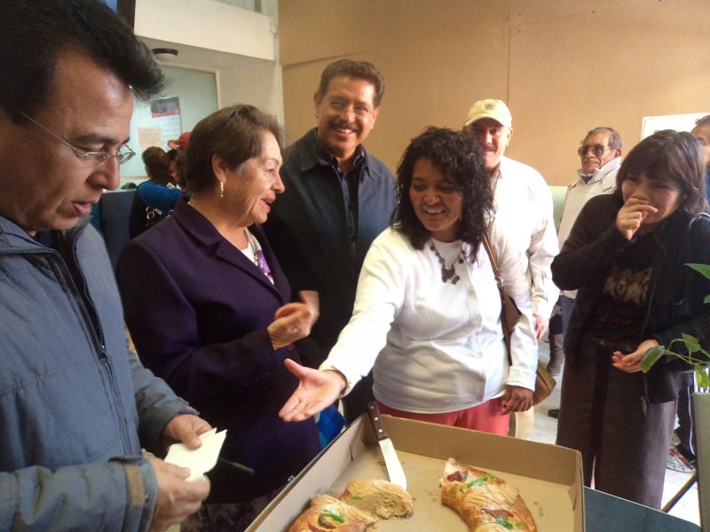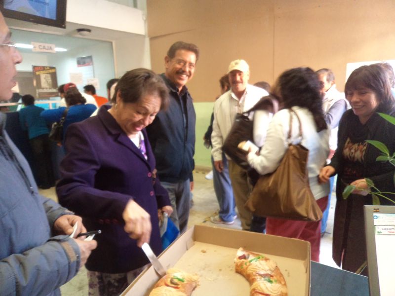 Juan Bárcenas González, director general de la Comisión de Agua Potable y Alcantarillado del Municipio de Tlaxcala (CAPAM), encabezó la tradicional partida de rosca de reyes con los usuarios que llegan a pagar su cuota del servicio de agua potable.
