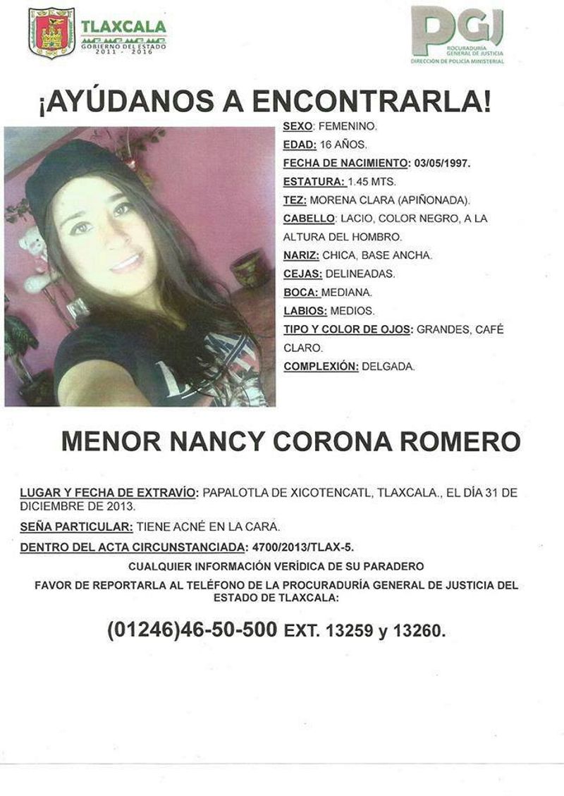 La primera Alerta AMBER del año fue activada por la Procuraduría General de Justicia del Estado (PGJE) para localizar a la menor de 16 años de edad, Nancy Corona Romero, quien se extravió en el municipio de Papalotla el 31 de diciembre pasado.