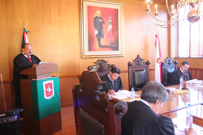 El presidente del Poder Judicial de Tlaxcala, Justino Hernández Hernández, entregó a los secretarios del Tribunal Superior de Justicia (TSJ) y del Consejo de la Judicatura, el informe del estado que guarda la administración de este ente público correspondiente al ejercicio fiscal 2013.