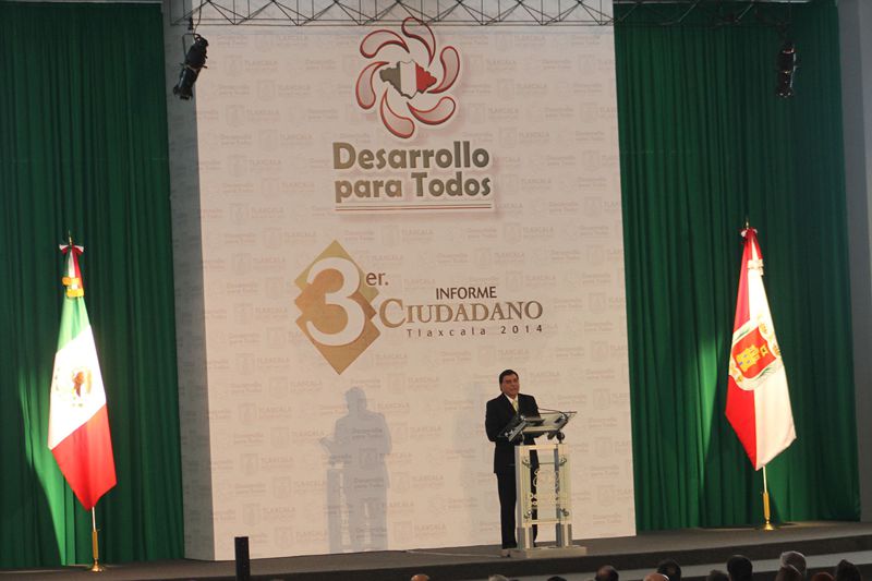 Entre otra numeralia, el gobernador tlaxcalteca enfatizó que en tres años no solo se detuvo la caída de empleos, sino que ha crecido a la fecha en 17 por ciento más de fuentes formales, así como el incremento del cinco, 10 y 12 por ciento en afluencia turística de 2011 a 2013.
