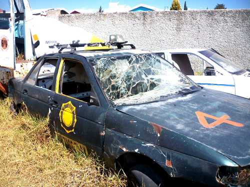 Apizaco, Tlaxcala.- La administración del ex alcalde de Apizaco, Orlando Santacruz Carreño además de la anarquía y desorden en las calles de la otrora “Ciudad Modelo”, dejó en calidad de chatarra vehículos que solo sirven para venderse como fierro viejo.