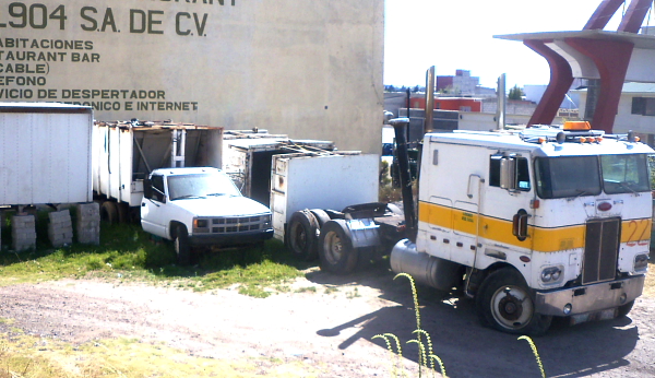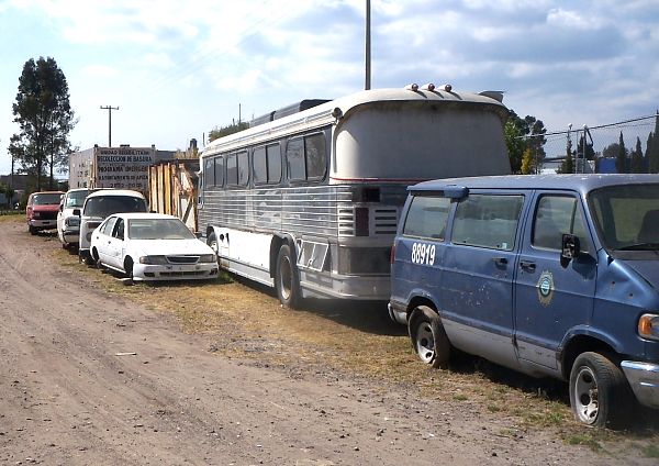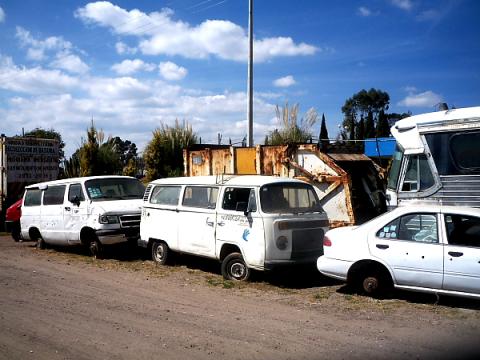 Lo rodean un autobús, autos, camionetas y otras unidades que pareciera que se encuentran en perfectas condiciones, sin embargo fueron llevadas a ese lugar por ser chatarra.
