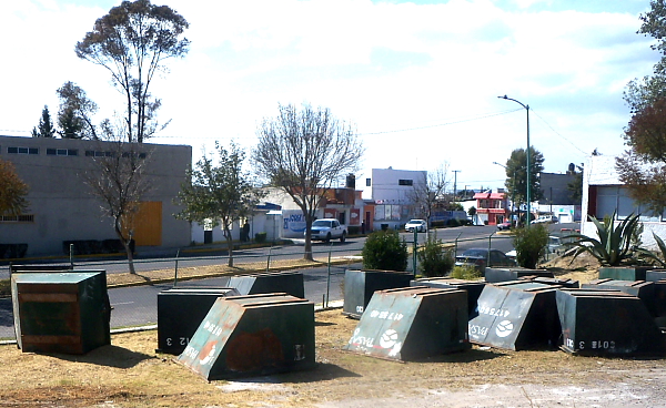 Un poco más adelante unos treinta contenedores de basura de la empresa pasa, se encuentran en franco deterioro, mientras la basura se acumula en las calles y colonias, estos contenedores están desaprovechados.