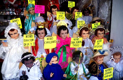 Apizaco, Tlax.- Por las calles de la otrora “Ciudad Modelo”, en las inmediaciones de los mercados municipales comienzan a aparecer las filas de niños Dios, los hay para niños cirujano, doctor o Juan Diego, entre muchos otros.