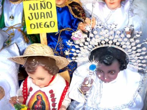 Por ejemplo, hay niños con atuendo de San Martín Caballero con todo y Caballo o de Ángel de la Abundancia; de Arcángel San Miguel o Rey del Cielo; de Santo Niño Doctor o Niño de Atocha; de Niño Redentor o Niño Pescador.