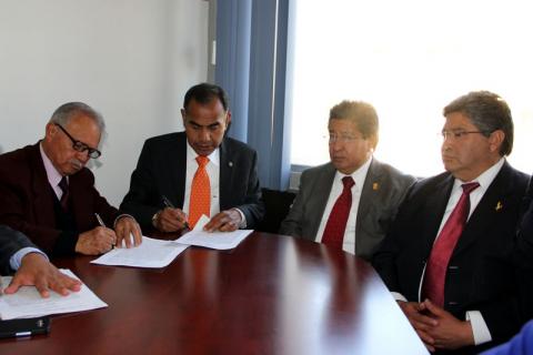 El Dr. Víctor Job Paredes Cuahquentzi, Rector de la Universidad Autónoma de Tlaxcala (UAT), y el Mtro. Luis Peña Corona, Secretario General del Sindicato de Trabajadores de la Universidad Autónoma de Tlaxcala (STUAT), firmaron este miércoles, ante la Junta Local de Conciliación y Arbitraje, el acuerdo correspondiente al incremento salarial 2014, obteniéndose para los trabajadores afiliados un incremento directo al salario de 4% y dos días más de aguinaldo.
