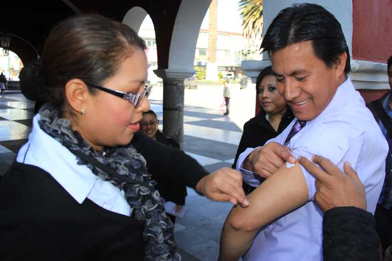 El alcalde de Chiautempan Antonio Mendoza Romero participó en la campaña de vacunación contra la influencia, dando muestras de respeto y amor a la vida, de esta forma él mismo dio muestra de lo dicho y fue vacunado por enfermeras pertenecientes al sector salud.