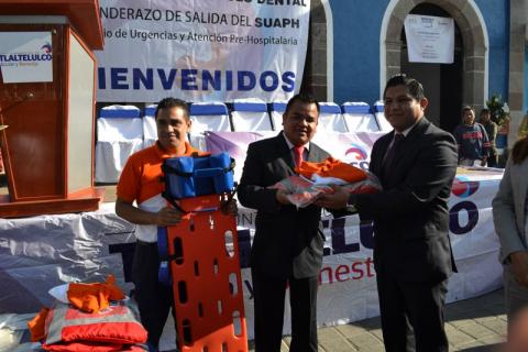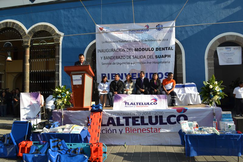 Al llevarse a cabo la inauguración del módulo dental así como el banderazo de salida del Servicio de Urgencias Médicas y Atención Pre-Hospitalaria (SUAPH) del municipio de Tlaltelulco, el alcalde Miguel Ángel Polvo Rea se comprometió a que este servicio de emergencias estará disponible las 24 horas del día los 365 días del año, atendiendo los llamados que la ciudadanía requiera.