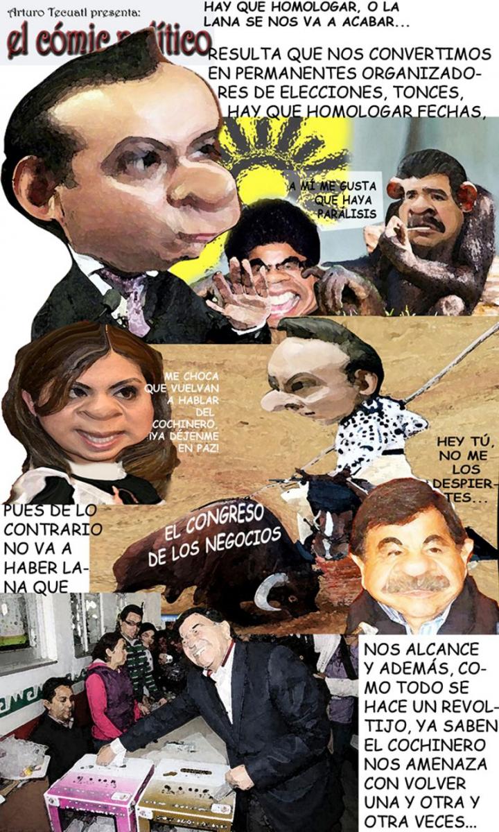 Staban los diputados como durmiendo la mona, y otros ya muy metidos en los bisnes, cuando de repente se acordaron que también les pagan por trabajar, así que lo primero que hicieron fue ponerse a ver aquello de la homologación de las elecciones, porque resulta que nos pasamos la vida organizando comicios, eso nos quita tiempo y da al traste con la democracia.