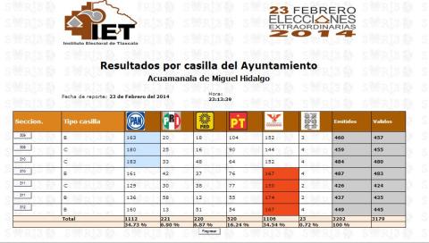En cerrada votación, se declaró ganador el candidato del Partido Acción Nacional (PAN) Alejandrino Espinoza Vázquez a la alcaldía en Acuamanala con seis votos de diferencia tras computarse las siete casillas en el proceso electoral extraordinario, y luego de que el SARJE iniciara tarde, antes de media noche se cayó el sistema.