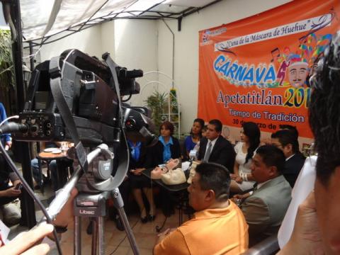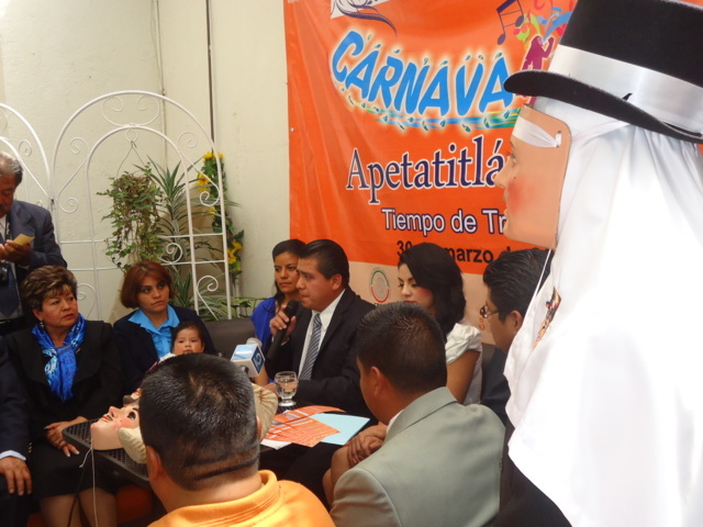 Durante esta Rueda de Prensa el Presidente Municipal se vio acompañado la Presidenta del DIF Municipal de Apetatitlán, Berenice Sánchez Ordoñez; El Diputado Local, Ángelo Gutiérrez Hernández; La señorita Kenya Estefanía Almonte Torres, Reina de la Algarabía del Carnaval 2014; la C. Elba Xóchilt Sánchez Espinoza, Presidenta del Comité del Carnaval; El Lic. Iván Teomitzi Solís, Tesorero del Comité del Carnaval; el Lic. Luis Mendoza Romero Director de Cultura en el Municipio, así como integrantes del Comité del Carnaval.