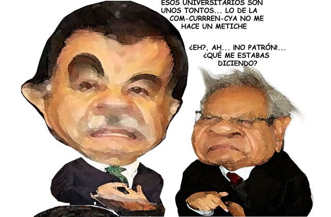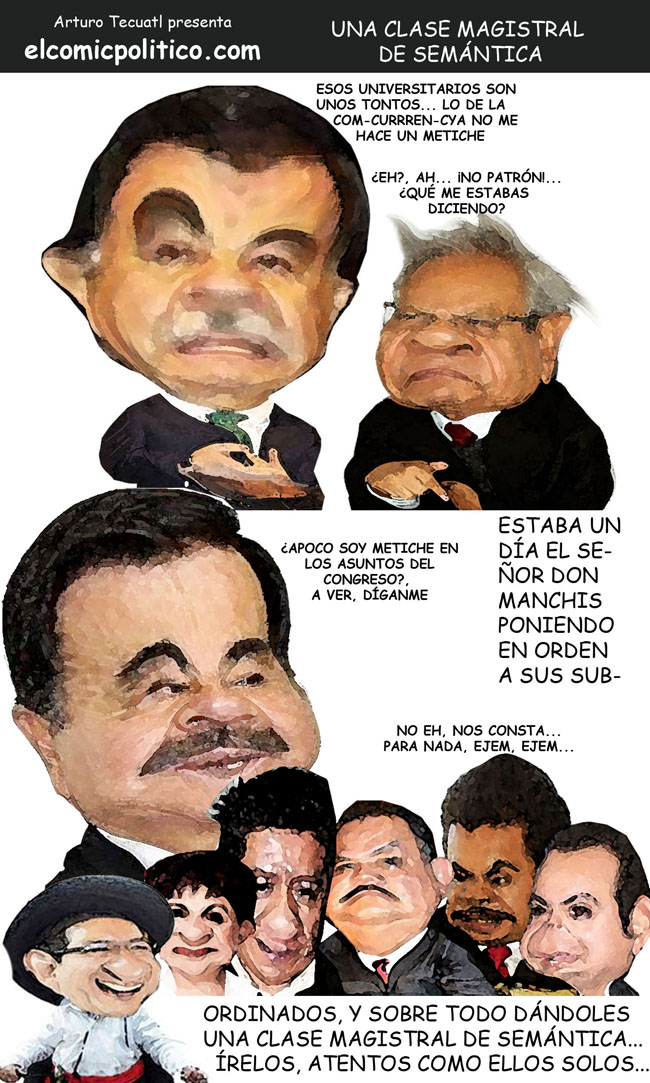 Cuando al mero prencipal le da por abordar el sentido profundo de las palabras, hay que cómo sus pupilos ni una pestaña mueven de la atención que le prestan... helo aquí, hablando del significado de la palabra "concurrentemente", y la conclusión más importante de dicho análisis: "los universitarios son unos tarugos"... eso es a lo que llegó el manchimaestro de la lengua...