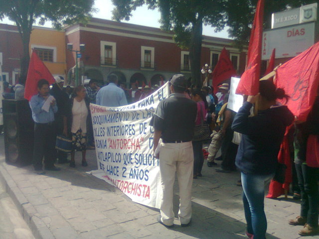 Tlaxcala, Tlax.- Este jueves con una concentración de 250 personas frente al Palacio de Gobierno, las familias adheridas al Movimiento Antorchista de Tlaxcala acudieron en busca de la atención del Secretario de Planeación y finanzas, el Lic. Jorge Valdez, para darle solución y concretar varias obras de desarrollo social que desde hace un año se encuentran inconclusas.