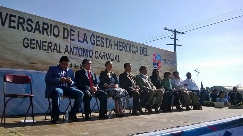 Sobre el bulevar Santa Ana – San Pablo, a la altura del busto de Antonio Carvajal, integrantes del Ayuntamiento de Apetatitlán, acompañado por una delegación del municipio de Atlixco, Puebla, así como la representante del Ejecutivo local, María Antonieta Ordóñez Carrera, llevaron a cabo la conmemoración en comento.